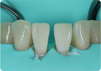 | ポイント | ラバーダム防湿をし、唾液や呼気の侵入を防ぎ湿度を下げることで、セラミックの接着力の向上を計った。接着力の向上により、脱離や破折の予防になる。 |