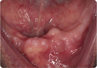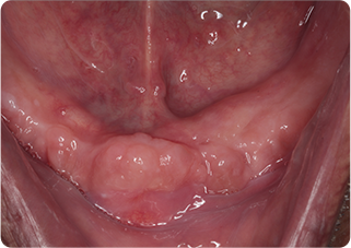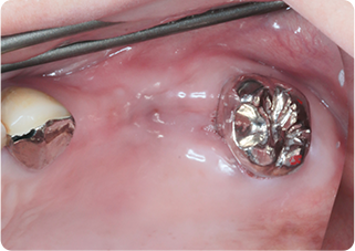 | ポイント | 入れ歯が骨隆起に強く当たり痛みがあったため、骨隆起を除去した。入れ歯が入る歯肉の部分はなるべく尖っている場所が無い方が痛みが出づらいため、症例に応じて骨隆起除去を行う場合がある。 |