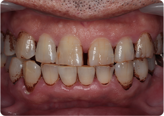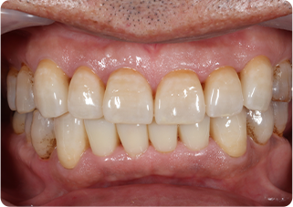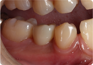 | ポイント | 抜歯後、歯肉と骨の回復を待ちインプラントを埋入した。プロビジョナルレストレーションにて歯肉のマネージメントをすることにより、審美的で機能的な最終補綴物の作製が可能になった。 |