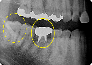 | 主訴 | 左下奥歯を抜歯したが、入れ歯以外の治療を希望 |