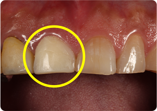 | ポイント | むし歯ではないので歯を削らずにダイレクトボンディングを行った。歯の形が理想の形になるよう、術前にシリコンインデックスを作成し充填の際に使用。また、充填時にラバーダム防湿を行うことで、詰め物の接着効果が最大限発揮できるようにした。 |