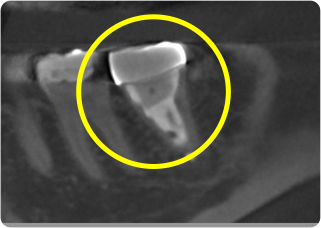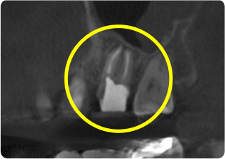 | ポイント | う蝕検知液を用い、むし歯の取り残しが無いようにし、ラバーダム防湿を行い、無菌的に根管治療を行った。根管充填材は、殺菌作用の強い保険適応外のMTAセメントを使用した。 |